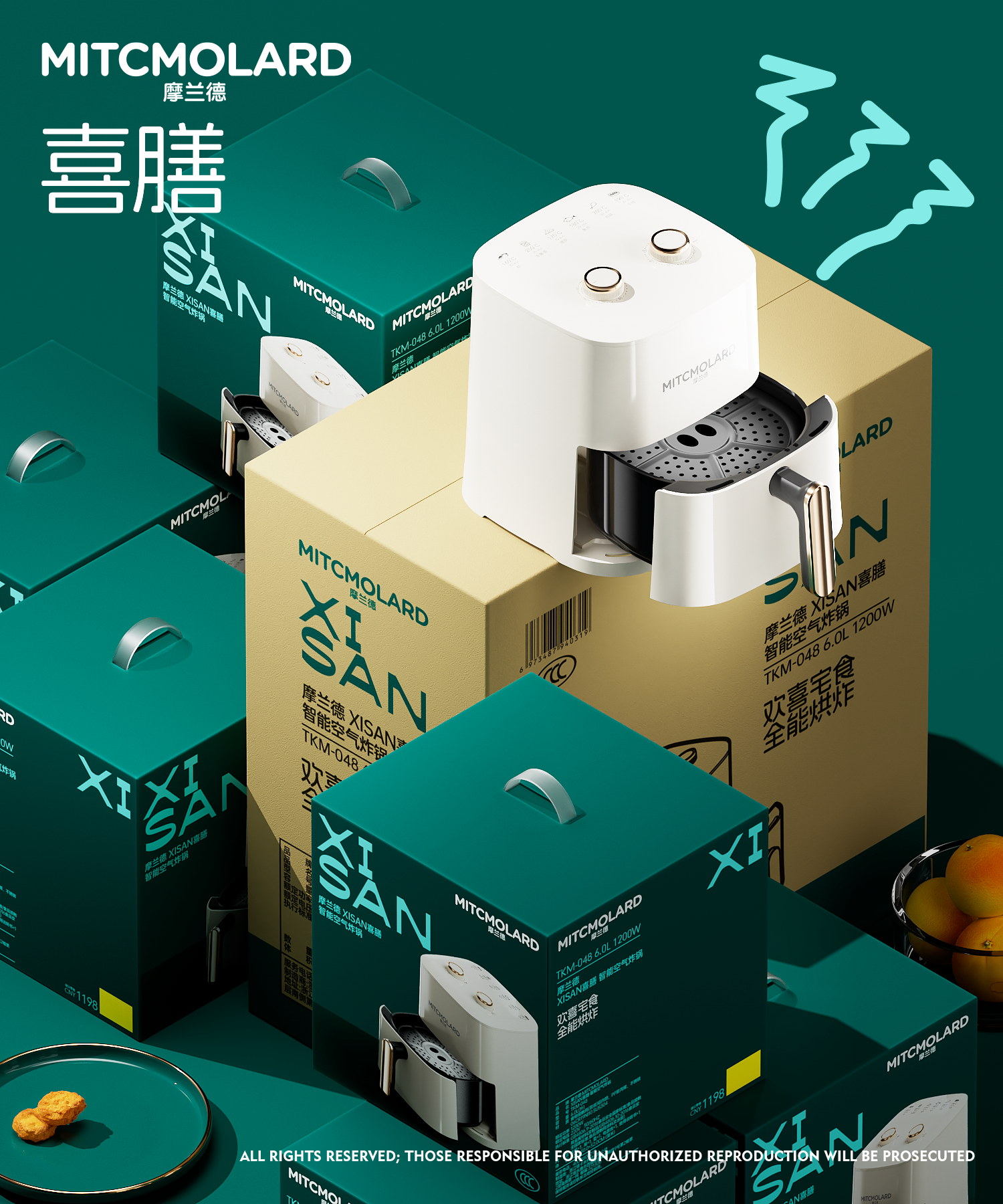 • 商品名称:喜膳.智能空气炸锅 TKM-048