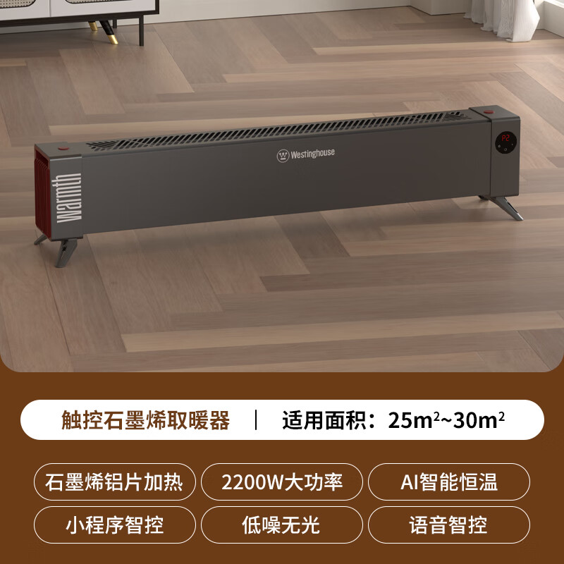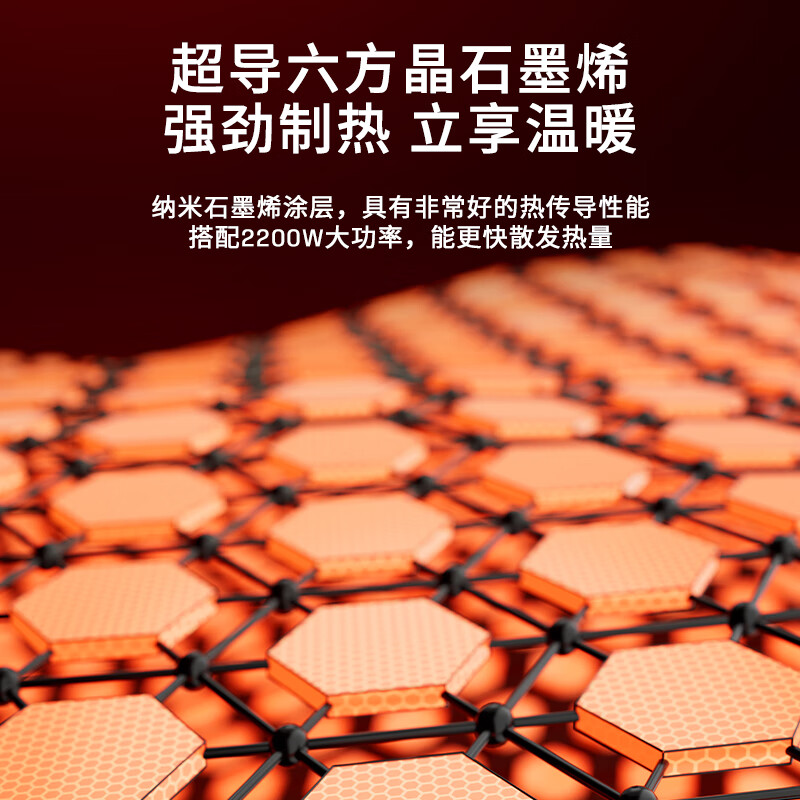 石墨烯速热技术, 15-35℃温度可调调节 两档调节 热幕立体供暖 负离子净化 语音智能控制 超大制热面积(加长)